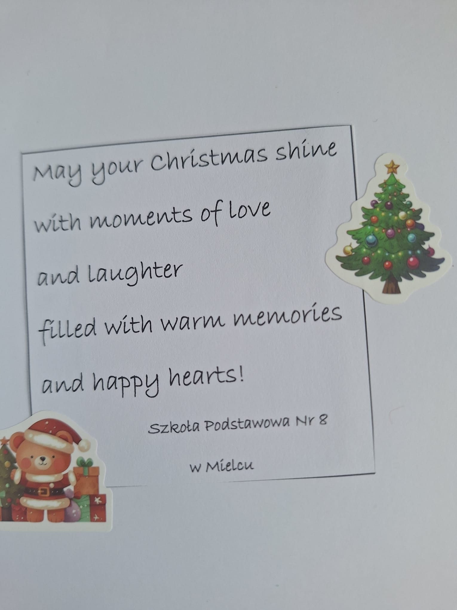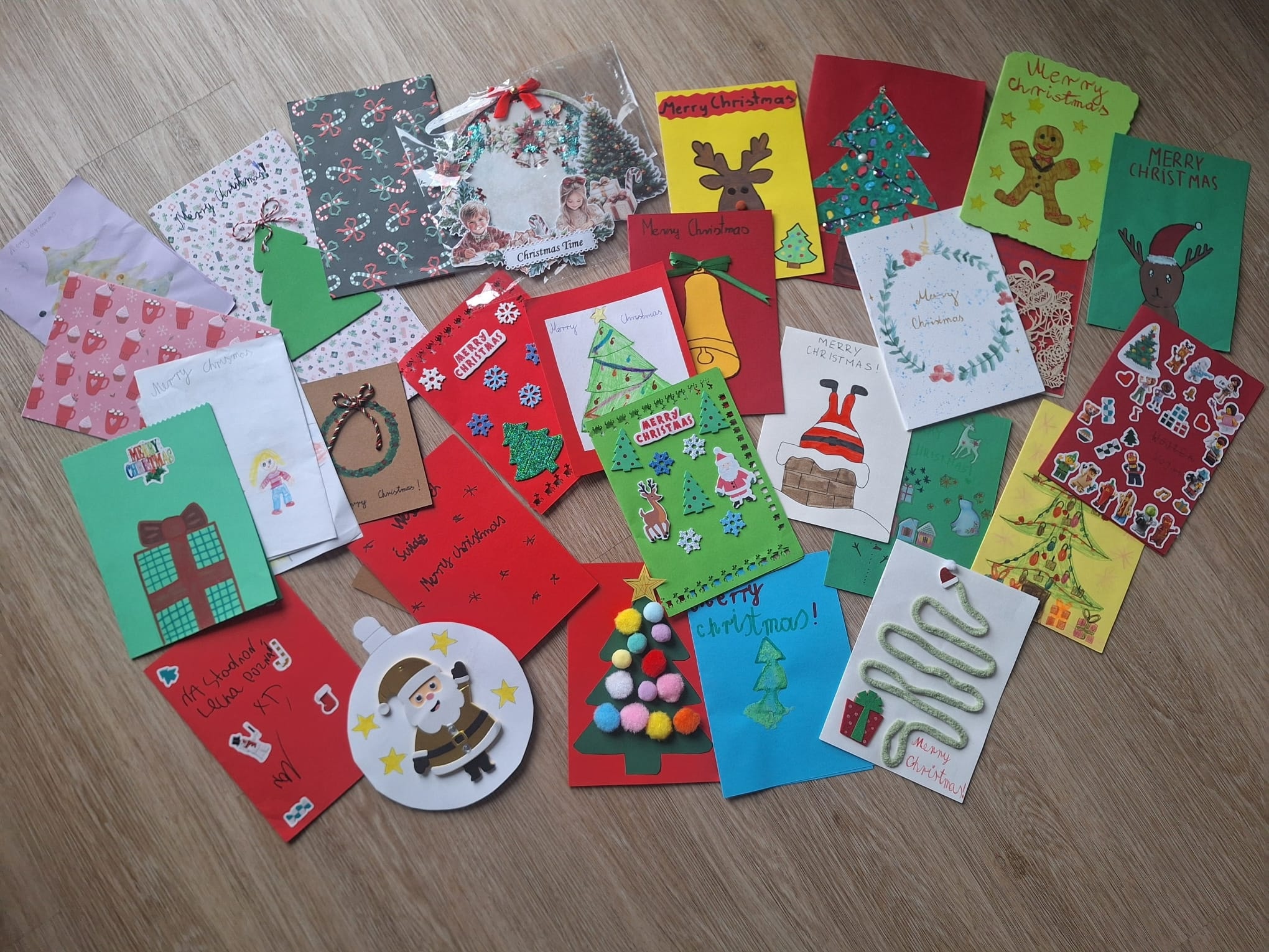 Uczniowie klas 2a, 2c, 2d oraz 4a, wspólnie z nauczycielem języka angielskiego, wzięli udział w wyjątkowej świątecznej wymianie kartek bożonarodzeniowych ze szkołami z różnych zakątków Polski