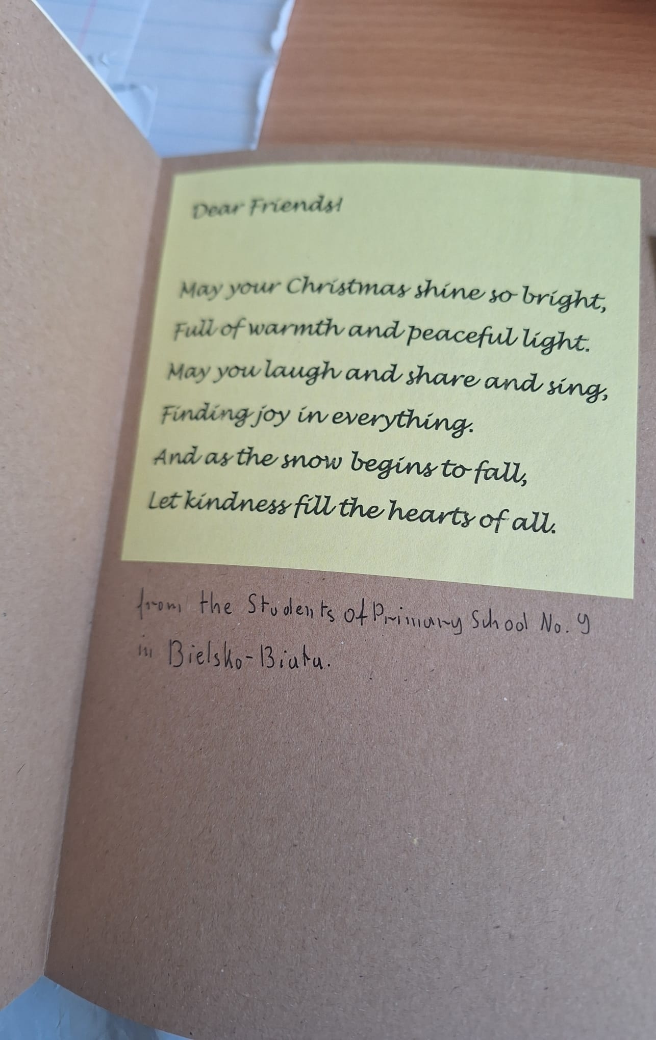 Uczniowie z ogromnym zaangażowaniem przygotowali kartki, pisząc życzenia w języku angielskim i poznając rówieśników z innych regionów kraju.
